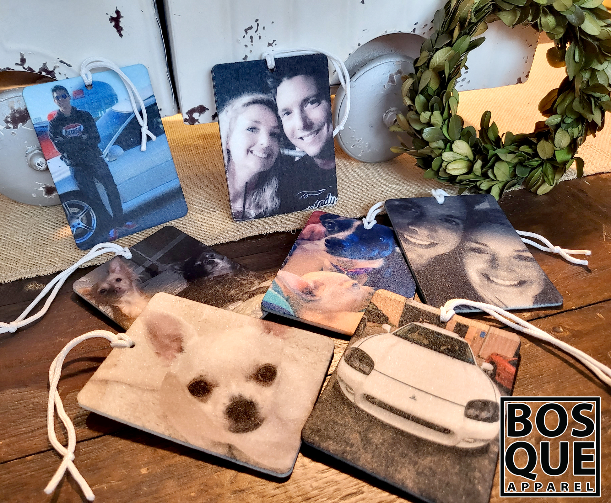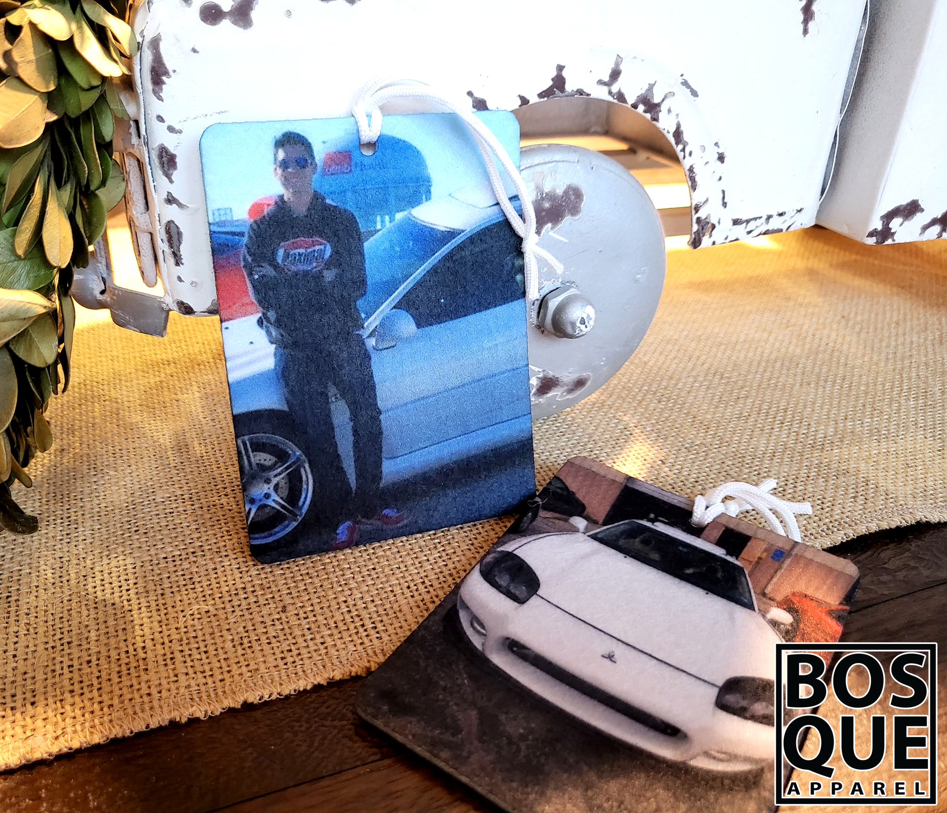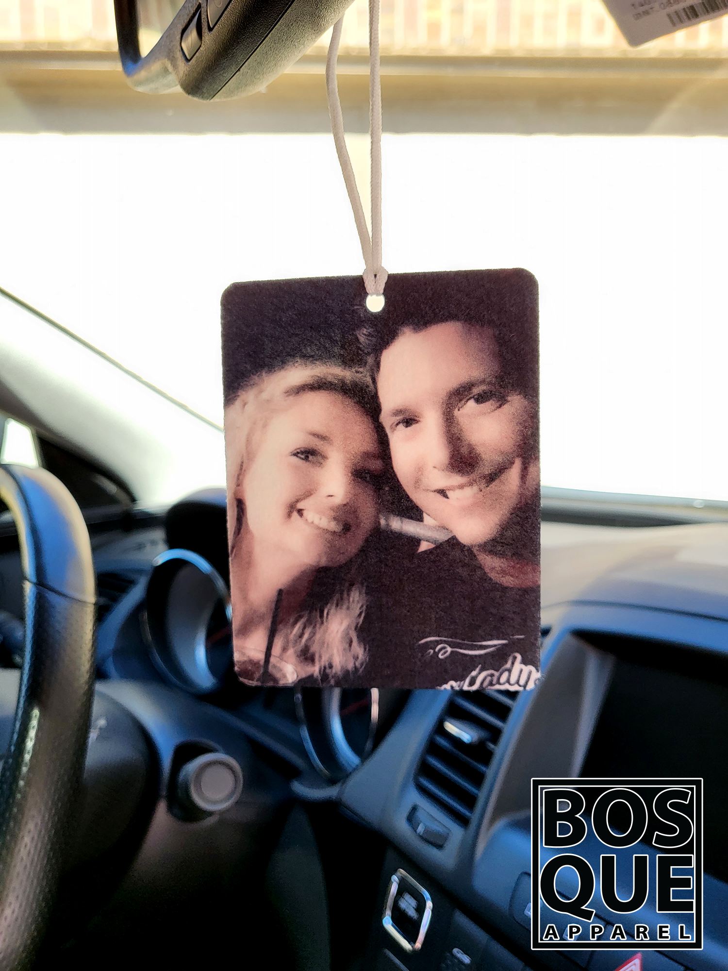+ A High Quality Air Freshener with your photo printed on a felt material. The material is absorbent to accept a scent of your choosing.